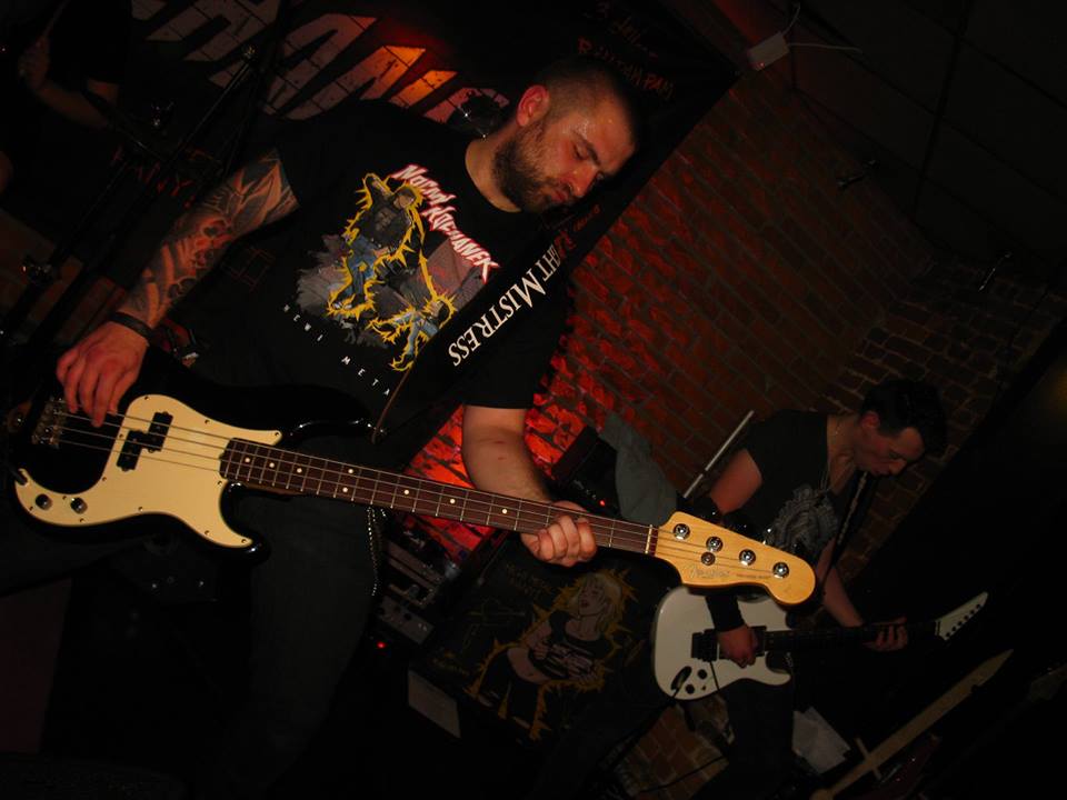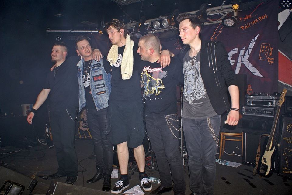 Mój pierwszy przystanek na wiosennej trasie Hewi Metal Pany przypadł na Poznań i klub Pod Minogą, którego drewniana podłoga podczas koncertu Nocnego Kochanka uginała się groźnie pod ciężarem pogującej, metalowej gawiedzi. A na wydarzeniu stawiła się jej imponująca ilość. Poznańskie plakaty już kilka dni przed koncertem zostały ozdobione napisem „sold out”, a klub wypełnił się czarnymi koszulkami po brzegi. To, że pyry czekały na Nocnego Kochanka, jak na zakończenie remontu Ronda Kaponiera było słychać jeszcze kilkanaście minut przed rozpoczęciem występu chłopaków. Publiczność samodzielnie odśpiewała od początku do końca „Wielkiego Wojownika”, „Andżeja” i „Minerał Fiutta”. Kiedy jeden z prowodyrów konkurencyjnego koncertu pod sceną zaczął wyrzucać z siebie wersy kolejnego utworu, na deskach klubu Pod Minogą pojawił się perkusista Kochanków, Domino i rozkojarzył tym wesoły, podchmielony chórek. Niedługo potem wybrzmiały pierwsze takty „Karate”, na scenę wskoczył Krzysiek, a pod nią zaczął się istny kocioł. Poznań wygrał konkurs na najlepiej bawiącą się oraz najbardziej spoconą publiczność moich przystanków trasy Hewi Metal Pany. Dwójka biednych ochroniarzy już przy trzecim kawałku – „Dłoni z podziemi” poddała się w kwestii odgradzania fanów od zespołu czy pilnowania cennego sprzętu. Również dzięki mojej wizycie w Poznaniu udało mi się usłyszeć na żywo utwór „Upadek” konkurencyjnej kapeli Night Mistress, który potem został zastąpiony na koncertach coverem Motorhead „Ace of Spades”, co uważam za całkiem dobre posunięcie.