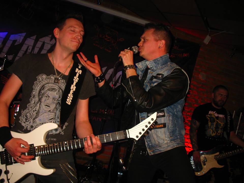 Przystanek trzeci – Łódź. Chęć zmiany miejsca do grania po jesiennym koncercie w Stereo Krogs zaprowadziła Kochanków do klubu New York w samym sercu miasta. Wieści, że to właśnie tam wystąpią chłopaki nie napawała mnie optymizmem. Miałam wątpliwości czy wypełniony stolikami, przyzwyczajony do częstych jam session oraz raczej spokojnych koncertów dla publiczności o stosunkowo wysokiej średniej wieku klub, udźwignie kochankową moc i metalową rozpierduchę. Strach i wielotygodniowe zmartwienia były niepotrzebne – organizatorzy zadbali o bezpieczeństwo oraz komfort publiczności. Takiego koncertu New York jeszcze nie widział. Już podczas grania supportu – grupy Shredlust, którą miałam okazję poznać w Poznaniu, pod sceną zebrała się spora grupa ludzi. Młoda kapela z Płocka po raz kolejny spełniła swoje zadanie i rozgrzała publiczność przed występem Nocnych Kochanków. Mimo że set nie przewidywał większych zmian i rewolucji, takowa nastąpiła. Fakt, że Kazon poza bezbłędnym spełnianiem swojej roli gitarzysty w zespole dysponuje także talentem wokalnym, nie stanowi tajemnicy. Również w Łodzi miał okazję zaprezentować swoje umiejętności w utworze „Ace of Spades” i przekonać się, że chórki w żaden sposób nie oddają tego, co potrafią jego rzadziej eksponowane struny – głosowe. Jednak przez zupełny przypadek na oczach łódzkiej publiczności objawił się kolejny silny konkurent wokalny Krzysztofa. Za sprawą jednej z anegdotek wokalisty, sam Ojciec Arkadiusz został zmuszony przez kolegów z zespołu oraz publiczność do zaśpiewania fragmentu utworu „Takie Tango” z repertuaru Budki Suflera. Oklaskom, śmiechom i wiwatom nie było końca. Są rzeczy na świecie, których nie da się opisać słowami, dlatego nie będę próbowała tego robić w tym przypadku. Kto nie widział, niech żałuje albo poszpera w jutubach.