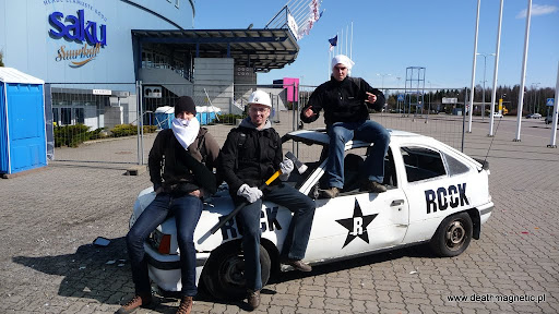 Przed halą ludzie zbierali się bardzo powoli. Około 17 pod Saku Suurhall koczowało tylko kilkadziesiąt osób, które w przerwie pomiędzy rozwalaniem Opla Kadetta a spacerami, siedziały pod drzwiami chroniąc się przez zimnem i czekając na ich otwarcie. Warto wspomnieć, że w Tallinie spotkaliśmy całkiem pokaźną grupę Polaków, których w tym miejscu bardzo serdecznie pozdrawiam!! Mam tu na myśli przede wszystkim Evillady, Meniosa z żoną i siostrzeńcem (?), oraz całą poznańską ekipę! Poznań był zresztą dla nas bardzo pomocny – jako że Yankes jest z Poznania, to dzięki temu koledzy przetrzymali w aucie nasz bagaż w postaci plecaków, a po koncercie poczęstowali zimnym browarem. Thanx guys!