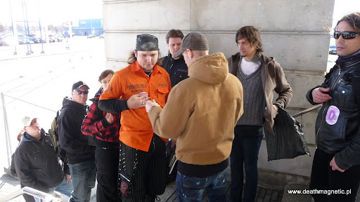 Z upływem czasu atmosfera gęstniała i robiło się coraz goręcej – niestety, tylko w przenośni. Wizytę w Tallinnie zapamiętam jako niezbyt przyjemną, a to z powodu przenikliwego zimna i silnego wiatru (może dlatego, że miasto leży nad morzem?). Około godziny 15:00 Yankes zaczął wyglądać innych MetClubbersów, którzy dostali się na Meet&Greet, niestety na próżno. Zero informacji na temat miejsca i godziny zbiórki, nic – Yankes opisał zresztą całe Meet&Greet na łamach naszego serwisu – jeśli ktoś nie czytał jego relacji – koniecznie musi to nadrobić! Wreszcie pojawił się tajemniczy jegomość (jak się okazało lokalny – chociaż widziałem na zdjęciach z PreParty z Rygi), który zebrał wszystkich i zaprosił całkiem małą grupkę ze sobą. Ciekawymi „okazami” na Meet&Greet był koleś w żarówiasto-pomarańczowej koszuli imitującej strój z więzienia (coś a’la teledysk do St. Anger) oraz pan w wieku około 50 lat, który kompletnie nie wyglądał na fana… prawdopodobnie wygrał M&G w jakimś konkursie i postanowił odebrać swoją nagrodę.