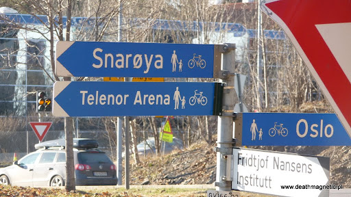 Koncert odbywał się kolejnego dnia, a dojazd do Telenor Arena na pierwszy rzut oka wydawał się niesamowicie skomplikowany. Hala znajduje się nie w samym Oslo, ale na jego przedmieściach – jadąc pociągiem wysiada się 2 czy 3 przystanki przed stacją centrum (Oslo S) – jadąc od strony miasta Drammen – tak jak ja. Do areny nie prowadzi żadna większa droga, a kilka ścieżek dla pieszych i rowerzystów – można to zresztą zobaczyć na zdjęciach – dotarcie na miejsce wyglądało na co najmniej uciążliwe. Oczywiście jak się okazało – należało podążać za tłumem. Na koncert nie szedłem sam a z moim kolegą – Wierzbą – to z jego gościnności korzystałem przez blisko tydzień. Jako, że oboje zdecydowaliśmy się udać na miejsce po jego pracy – było już stosunkowo późno bo około godziny 18:00. Na początku kręciłem nosem, że chcę być przed halą dużo wcześniej, aby zdobyć dobre miejsce, itp. Okazało się to grubą przesadą – trzeba zaznaczyć, że tylko w Polsce zajęcie odpowiedniego miejsca jest prawie zawsze związane z walką na śmierć i życie w przedbiegach. Za granicą jest oczywiście zupełnie inaczej a przybycie pod halę po 18:00 było w zupełności wystarczające.