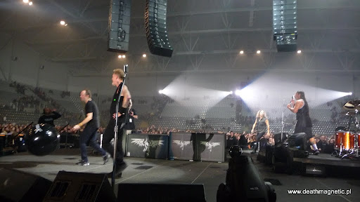 Nagle z głośników rozległ się grzmot błyskawicy i zaczęła się znajoma piosenka – teraz już wiem, że było to Heavy Metal Thunder Saxona. Kilkuminutowy kawałek kończy się dosyć nagle i wszystkie światła nagle gasną, Telenor Arena spowija całkowita ciemność. Chyba nie muszę opisywać co wtedy czułem, stojąc po blisko roku przed sceną, na której za moment rozpocznie się koncert wielkiej czwórki z San Francisco? Już po kliku taktach The Ecstasy of Gold miałem ciarki na całym ciele i oczywiście zacząłem nucić znaną nam wszystkim melodię – po której na scenie zaczęło się prawdziwe piekło 😉 Set rozpoczął się tradycyjnie od That Was Just Your Life, podczas którego mogłem po raz drugi w życiu obejrzeć niesamowite laserowe show – kto widział, ten wie, o czym mówię.